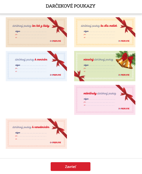 2. Zobrazia sa vám darčekové poukazy, vyberte si svoj a KLIKNITE NAŇ